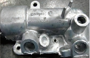如果壓鑄型腔噴涂后脫模劑過于堆積,或脫模劑的濃度過濃,脫模劑中的油、脂、蠟及有機(jī)硅油等有機(jī)物及水分遇到高溫的合金液后會產(chǎn)生大量的油煙,過多的油煙不僅嚴(yán)重污染合金液和模具型腔表面,還會使噴射充填的合金液快速氧化,引起鑄件表面及內(nèi)部出現(xiàn)黑斑、發(fā)黑及積碳。